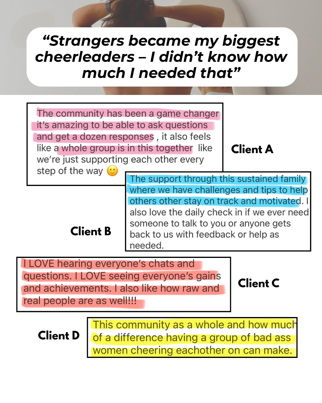 → Weekly Challenges that keep your motivation high & results excelling alongside women who inspire.